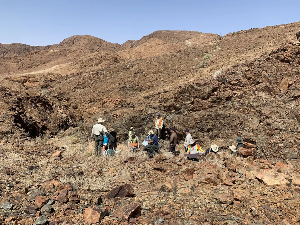 The field trip departed from Windhoek on September 21 and the 16 participants traveled by road to southern Namibia with descriptions of the regional geology and metallogeny along the way.